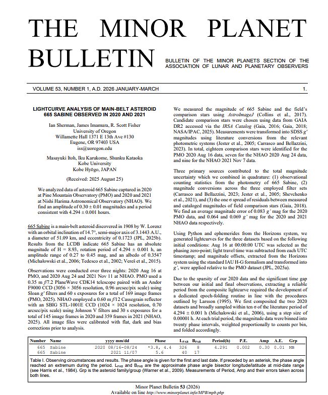 Minor Planet Bulletin, 53(1), 14.