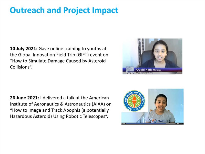I strengthened planetary defense by using robotic telescopes, open data and my coding and math skills to create an open-source algorithm to detect possible asteroid candidates.