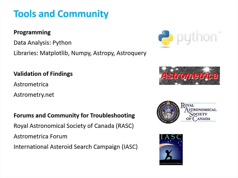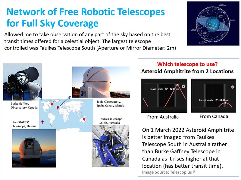 To learn about Python, asteroids, robotic telescopes and astronomy software, I took online courses, participated in astronomy-related Zoom calls, and wrote to astronomers for telescope time.