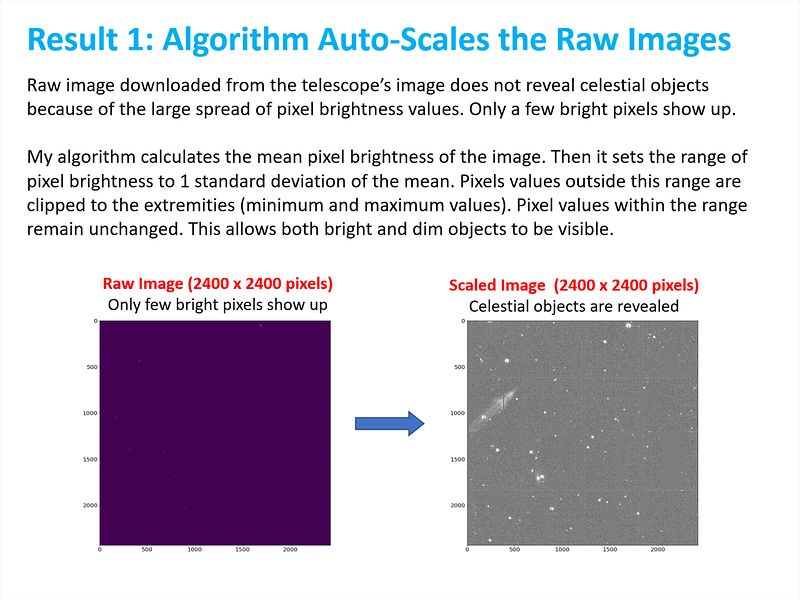My algorithm applied mean and standard deviation tools to automatically display dim and bright objects from any of the robotic telescopes.