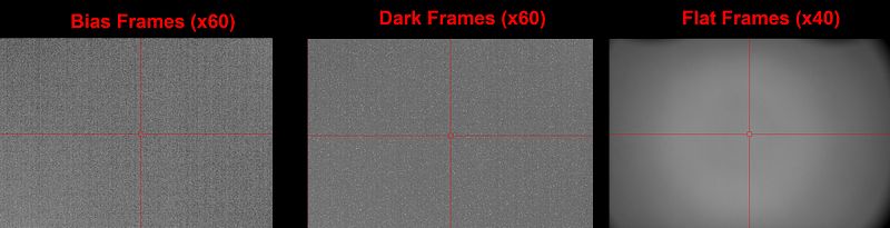 | Flat Frames (x40) | Evenly illuminated short exposures | Corrects vignetting and effects of dust/dirt on sensor or optic |