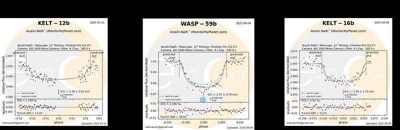 Three exoplanet transit observations were accepted and published by the ExoClock Project, contributing to ephemeris refinement for ESA's upcoming Ariel space telescope: