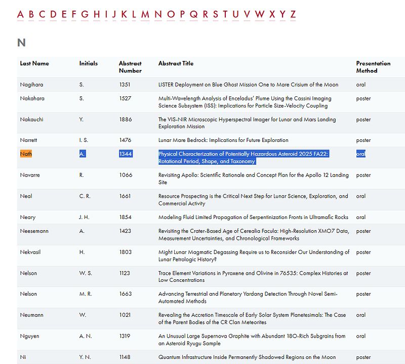 My talk was the closing presentation before the Panel Q&A. A copy of my presentation is available at: https://lpsc2026.vfairs.com/en/hall#webinar-2957162.My presentation went for around 8 minutes and I confidently presented my data, methodology, results, and discussions.